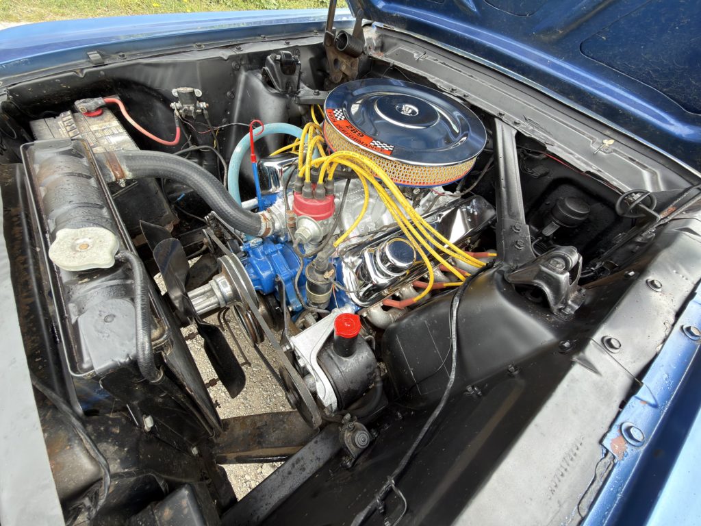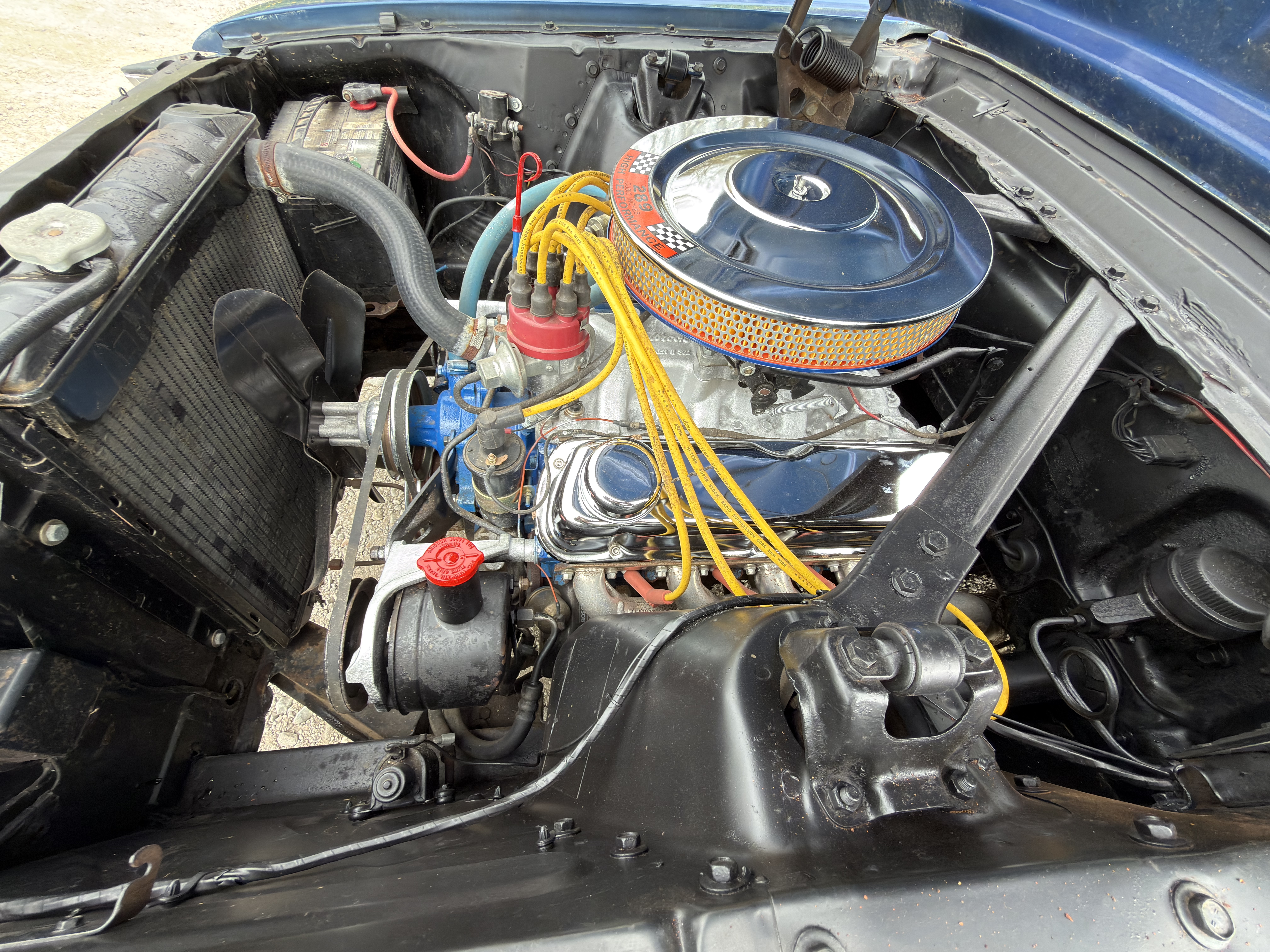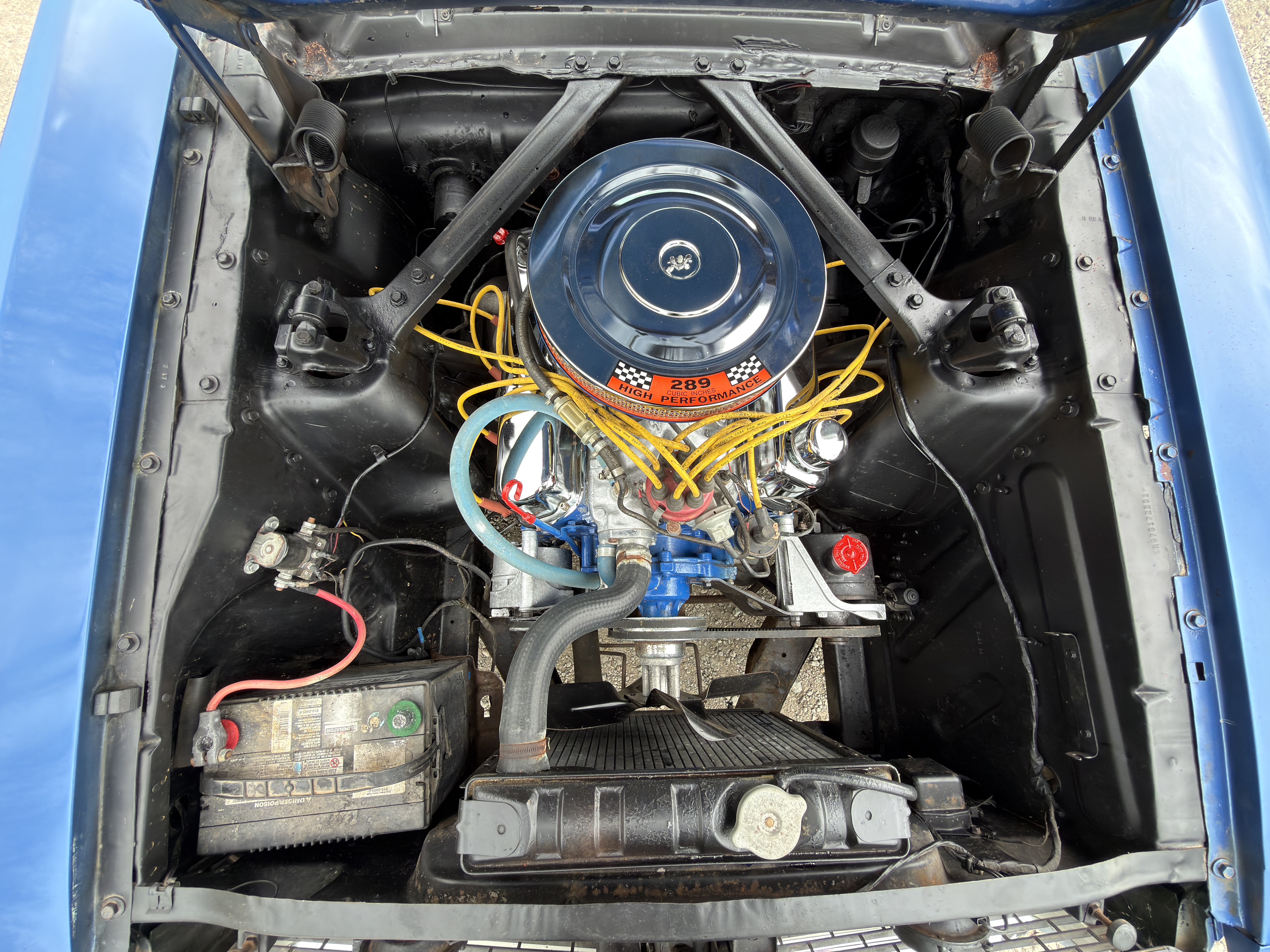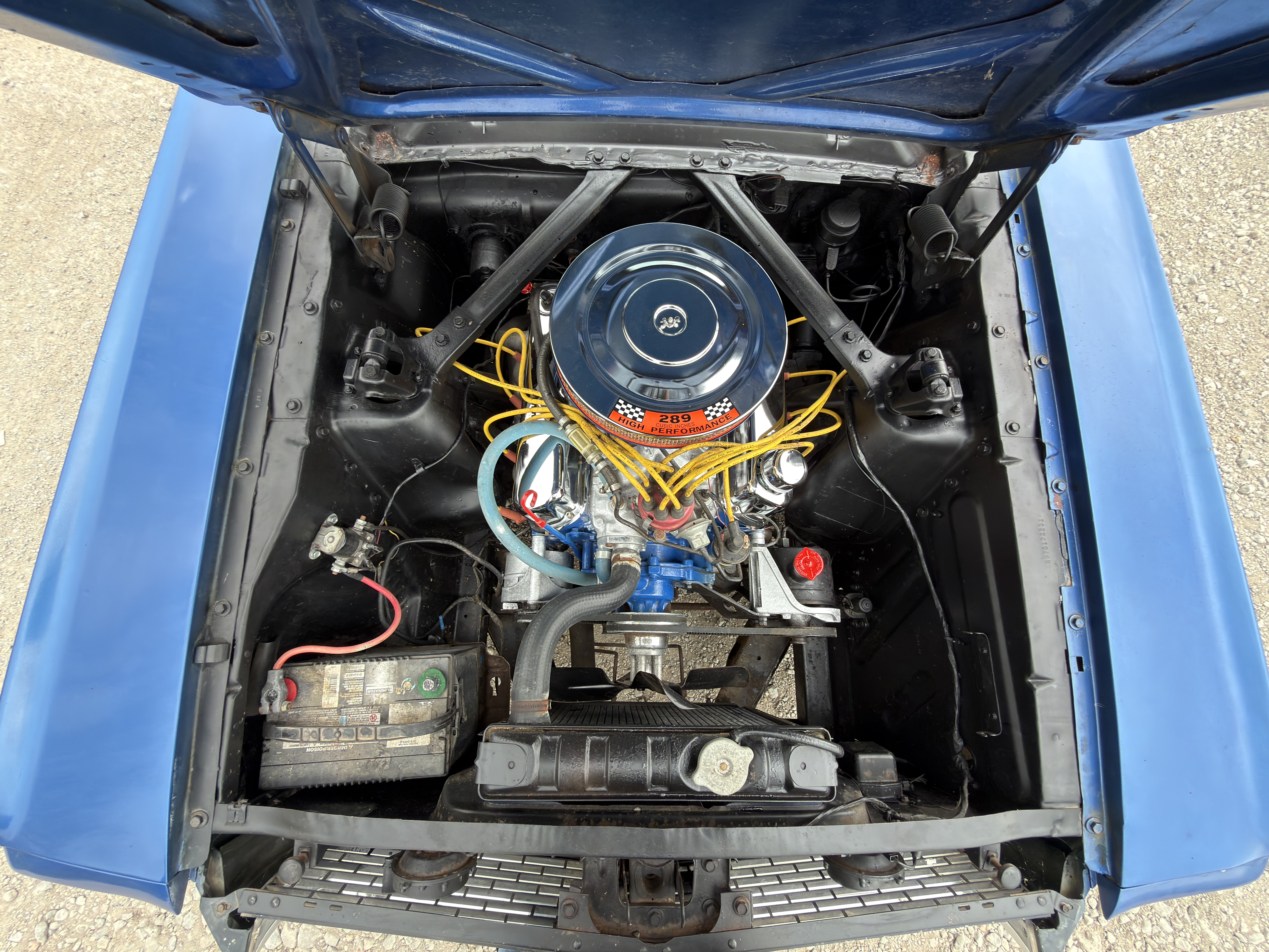 In the engine bay, the car is fitted with a 289 cubic inch V8. This unit has reportedly been upgraded to A-code specification, which is commonly associated with an increase of around 30 horsepower over the standard configuration. It also runs a 4-barrel double-pumper carburettor, which supports improved airflow and fuel delivery compared with a more basic setup. According to the information supplied, the engine was rebuilt approximately seven years ago and has covered only around 500 miles since. That said, the vehicle has stood for some time, so sensible recommissioning checks should be expected.
